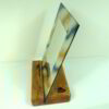 The mirror is 8″ x 11″. Its wooden base is 8″ wide x 5″ deep x 1.5″ high. The mirror in its stand is 11.5″ high.